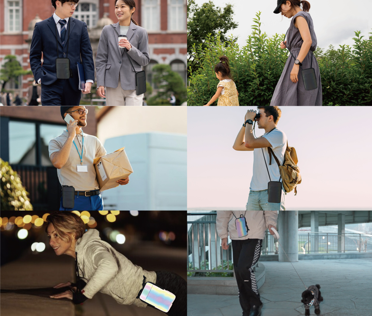 そこで、「昼の普段着を邪魔しない、身につけやすいアイテム」であるスマホポーチに着目しました。