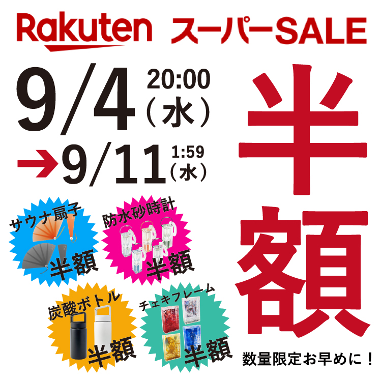 2024年9月4日(水) ~11日(水)開催の「楽天スーパーセール」にて、最大半額セールを実施いたします。