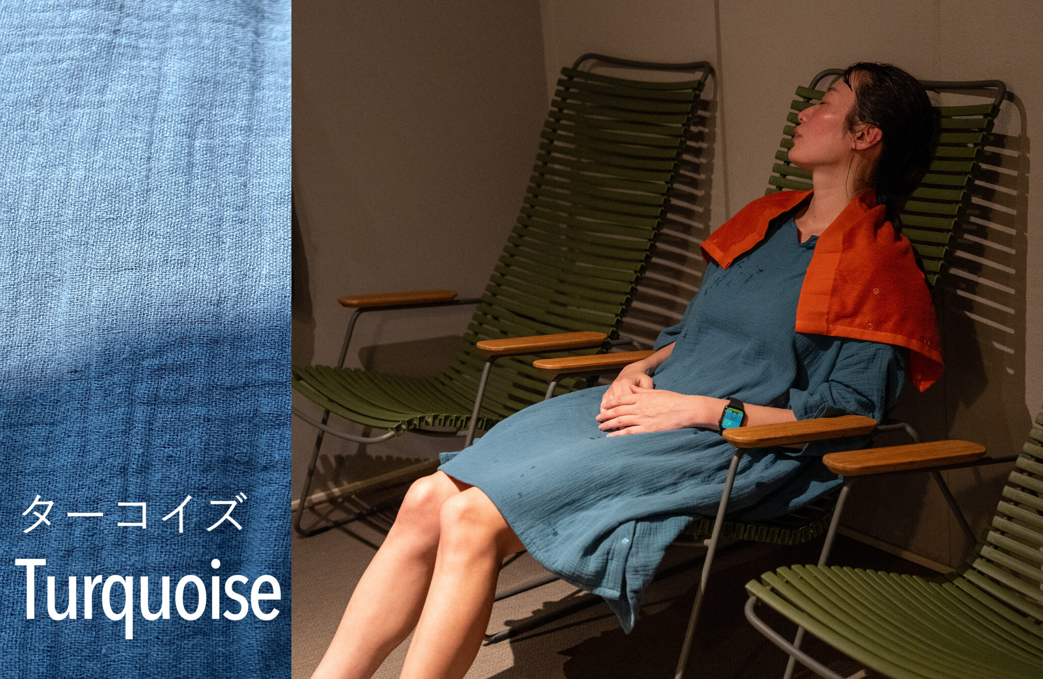 ターコイズ:少しくすんだブルーグリーン。湯上りにぴったりな、さわやかな印象です。